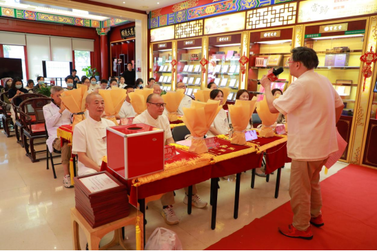 揭牌仪式环节,由成都宝芝堂党支部书记刘言正主任与各位名老中医专家以及各位特邀嘉宾共同为 “青少年中医文化启蒙教育合作单位” 揭牌。本次揭牌旨在整合医疗资源与教育资源,共同开发中医启蒙教育。随着红绸落下,现场掌声雷动,标志着中医药文化与校园教育的融合迈出新步伐。
